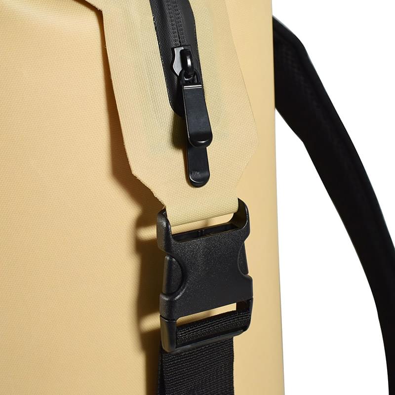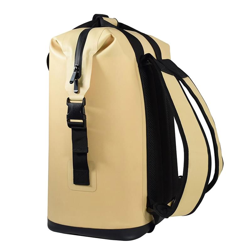 This backpack cooler is made from thick, coated, waterproof material and features an easy access open top design with adjustable padded backpack straps, top side handle, and utility loops on the front. It has super thick insulation, a molded bottom, and a durable zipper to keep contents cold for extreme amounts of time. Holds 18-24 cans.